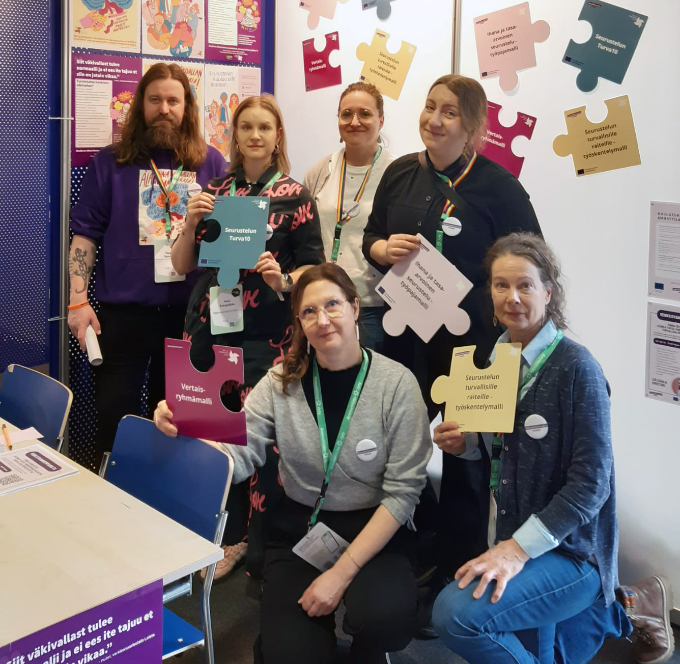 - ESR+ -hankkeilla voidaan tehdä monenlaista osallisuuden edistämiseen tähtäävää työtä. Väkivallattomuuden edistämisessä sekä turvallisten ihmissuhteiden mahdollistamisessa tärkeää on tarjota apua väkivaltaa kokeneille ja tehneille, mutta myös laajemmin lisätä tietoisuutta ja tarjota työkaluja ammattilaisille. Monialainen yhteistyö on tärkeää, kuten Väkivallattomuuden tukijat-hankkeessa, jossa kohderyhmänä ovat nuorten parissa työskentelevät oppilashuollon, koulun, sosiaalitoimen, nuorisotyön ja kolmannen sektorin toimijat, Partanen toteaa.